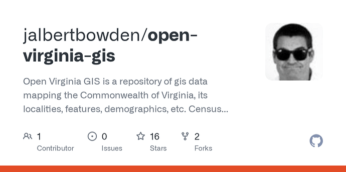 Open Virginia GIS is a repository of gis data mapping the Commonwealth of Virginia, its localities, features, demographics, etc. Census data, state data, and locality data included....eventually standalone will automagic all of this