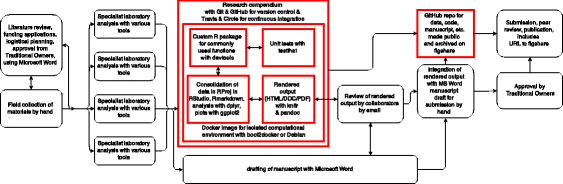 My current template for achieving this in my own work is here: GitHub - benmarwick/researchcompendium: NOTE: This repo is archived. Please see https://github.com/benmarwick/rrtools for my current approach which has a bunch of robust open source software engineering tools working for me to save time and catch errors.