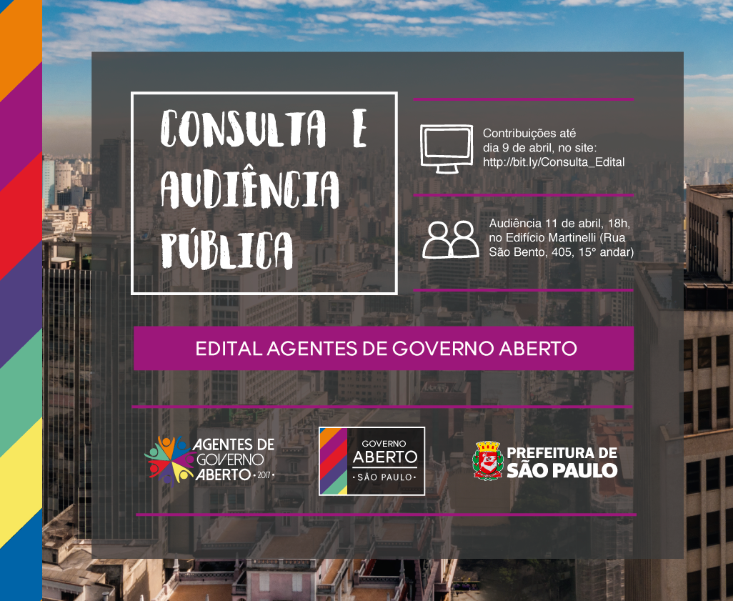A Prefeitura Municipal de São Paulo disponibiliza para Consulta e Audiência Pública o Edital “Agentes Formadores de Governo Aberto”.