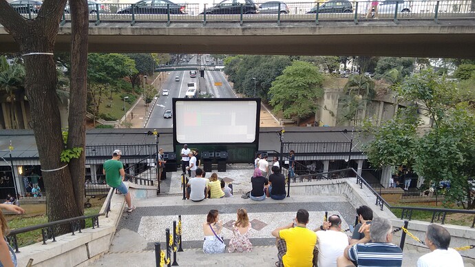 Há poucas semanas descobri o Mirante 9 de Julho, num dia em que estava tendo a sessão de algum filme, patrocinado pela empresa Jameson. No dia tive uma ideia de fazermos sessões abertas de filmes relacionados à Cultura Livre ou qualquer outro assunto que esteja alinhado à missão da Open Knowledge. Pensei até em falar com o Ariel, que tem seu (ótimo) vinho Los Mendozitos nesse espaço, para ver se consegue nos colocar em contato com os responsáveis para utilizarmos esse espaço pelo menos uma vez por mês promover debates em torno dos vários assuntos em torno de uma cultura livre e sessões abertas de cinema.
