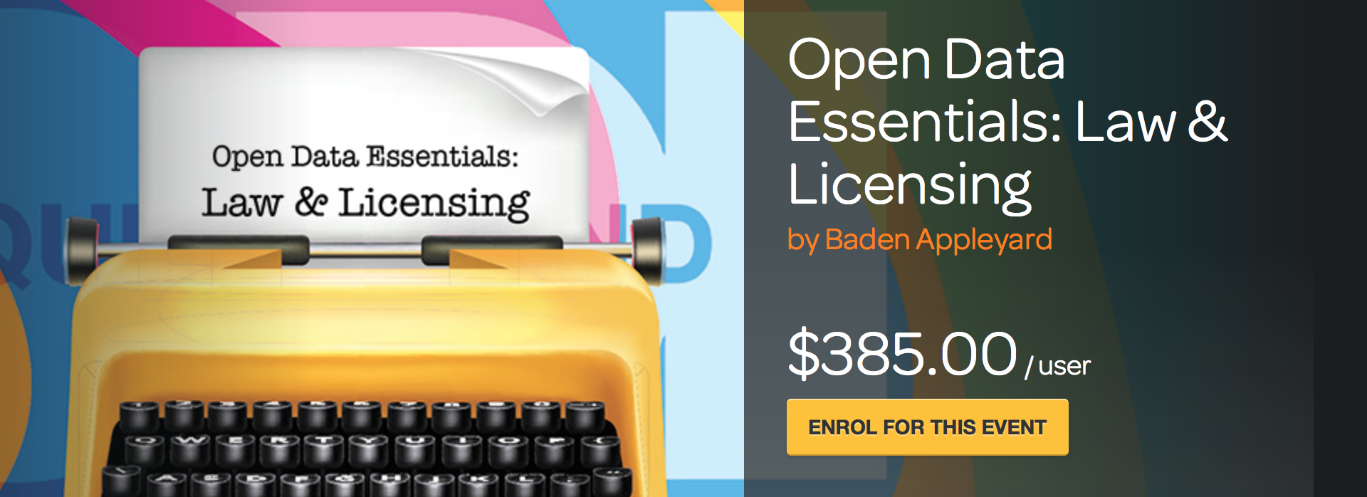 Baden Appleyard (@badapple) will be presenting a 3 hour course on Open Data Law and Licensing in Brisbane on 21 October from 9am-12noon.