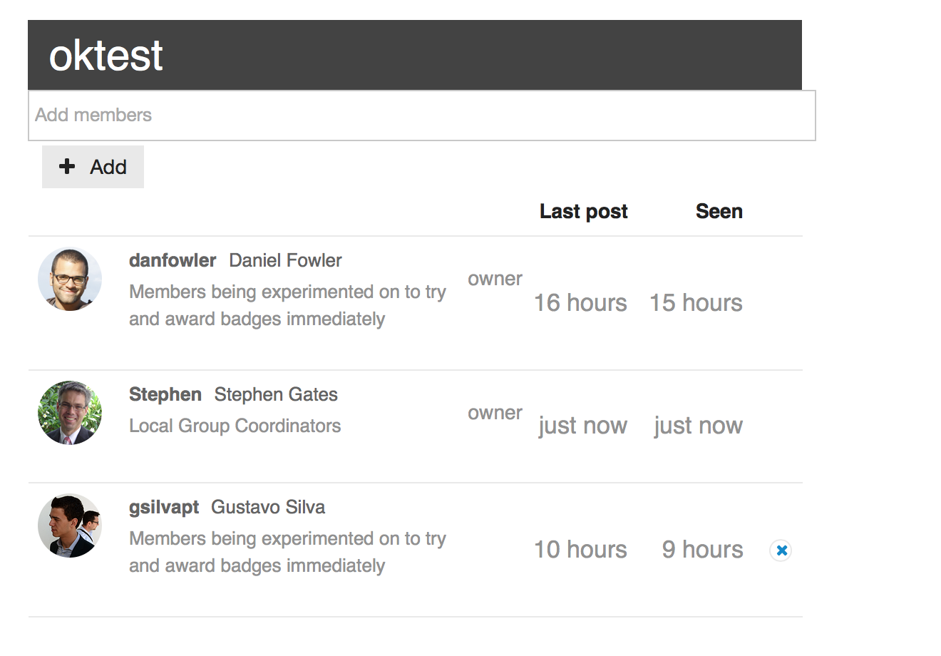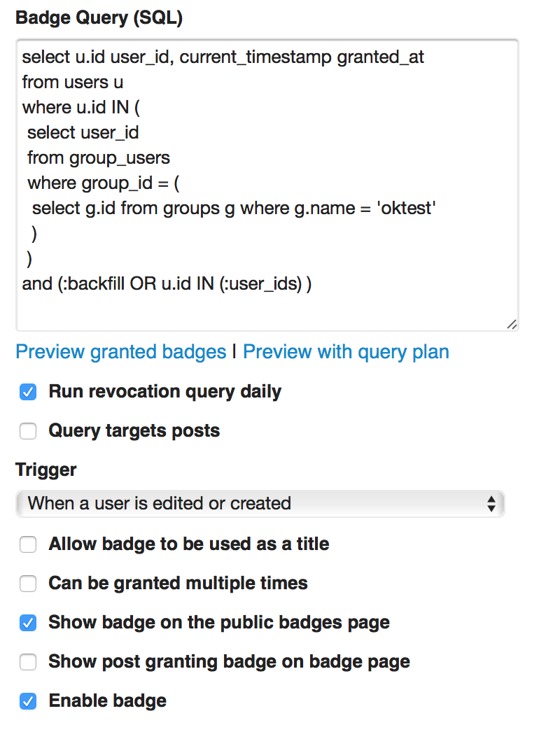 @gsilvapt I will experiment with your user and a new test group, oktest, and badge to see if this works. Let’s hope you get a new badge.