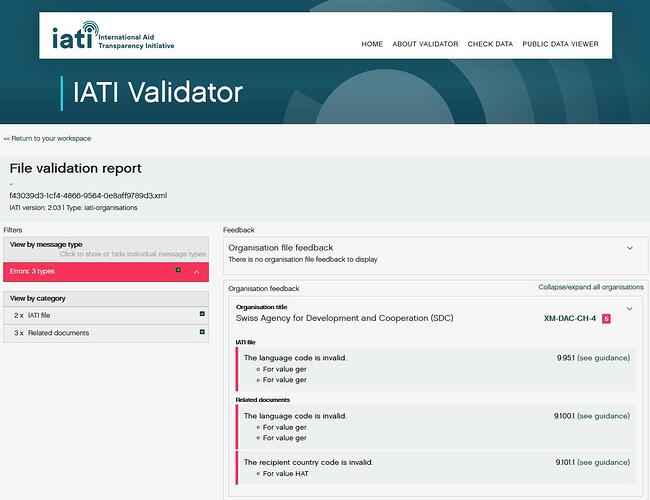 The immediately useful one for dealing with these XML files is the IATI Validator, where you can put in the URL or upload a file for ..