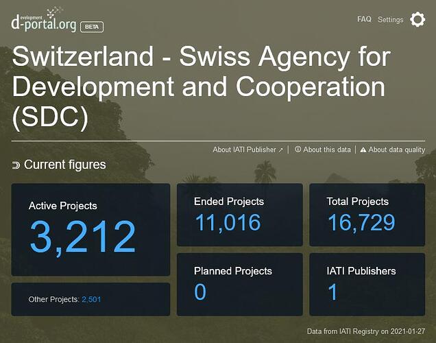 The Swiss Agency for Development and Cooperation (SDC) is the agency for international cooperation responsible for coordination on development topics and cooperation with Eastern Europe as well as for humanitarian aid delivered by the Confederation. They started publishing data to Opendata.swiss last year and are encouraging the community to take a look.